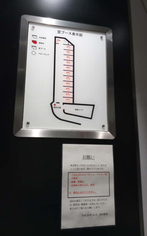 This is another very useful invention in Japanese bathrooms - the stalls light up for whichever is occupied so you don't have to check if the stalls are locked, which is so useful!