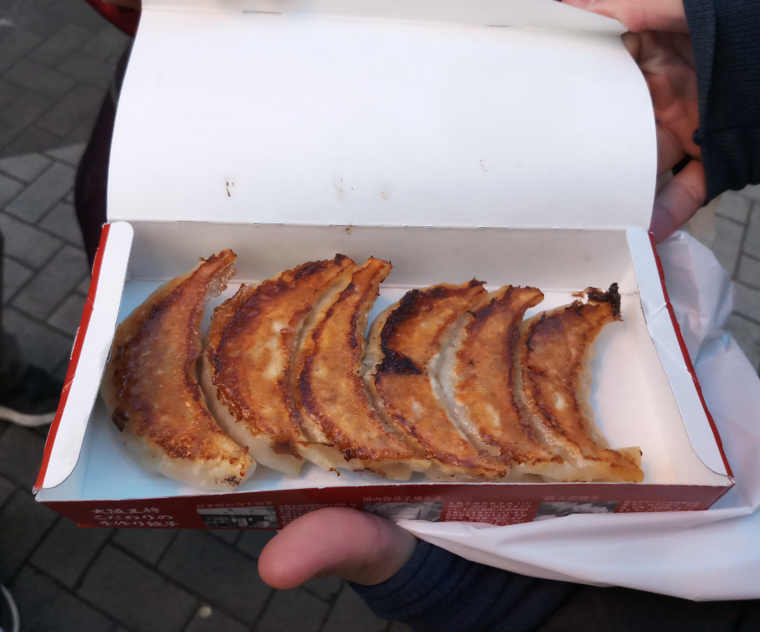 While walking along though, my mum got peckish so we bought a couple boxed of gyoza from this Osaka Osho stall and we all shared.