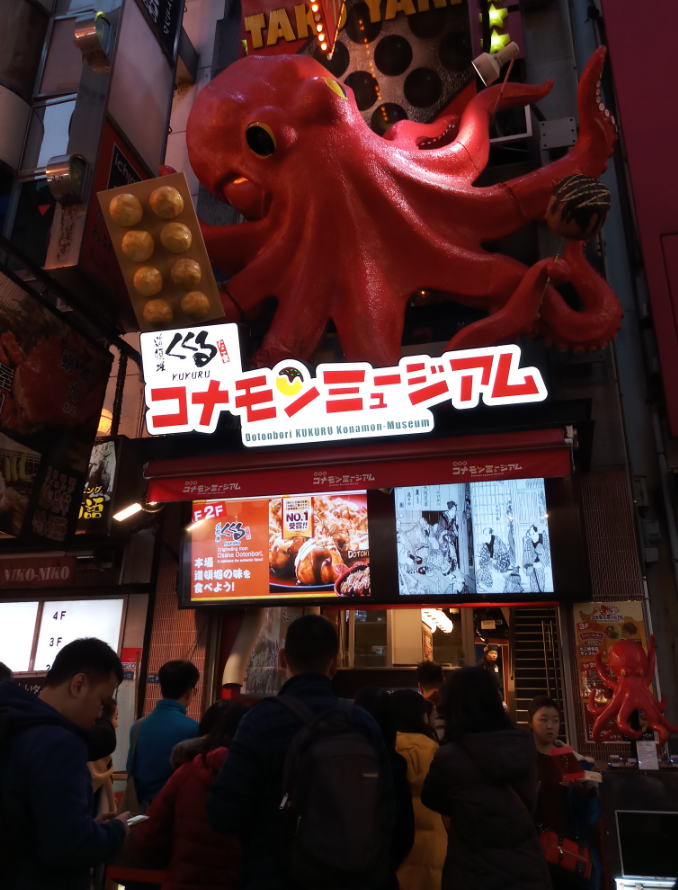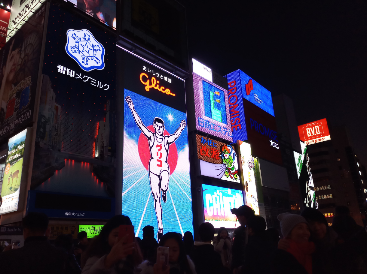 For those who didn't know, Glico is a household confectionary brand in Japan, and was founded in 1921 with the creation of their first product - Glico-Caramel, named after glycogen (a storage form of glucose in the body). It was thus marketed as a source of energy and had the mascot of the Glico Running Man! In 1935, a neon sign was set up here and remained there for 53 years until they updated it to LEDs in 1998. Now it's become the symbol of Dotonbori and more flashy billboards have popped up around him! (Source: theculturetrip)