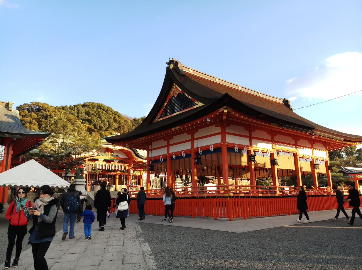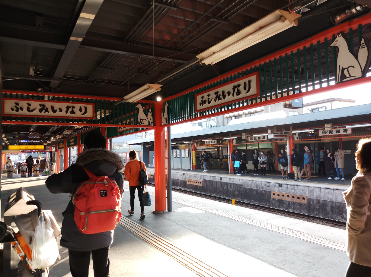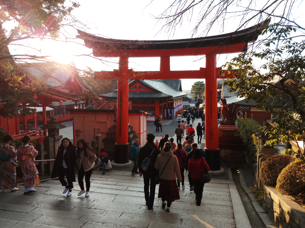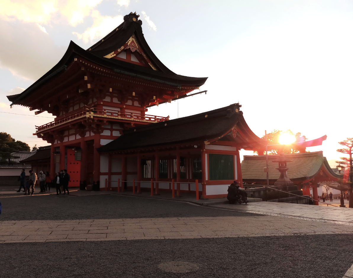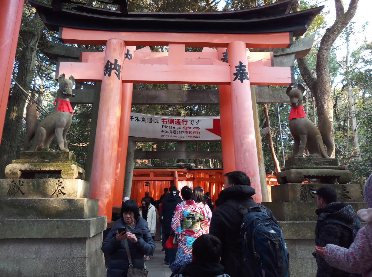 Because the place we were visiting, was the famous Fushimi-Inari Taisha! Which if you didn't know is an important Shinto shrine famous for its thousands of vermilion torii gates, which straddle a network of trails behind its main buildings. The trails lead into the wooded forest of the sacred Mount Inari, which stands at 233 meters and belongs to the shrine grounds.