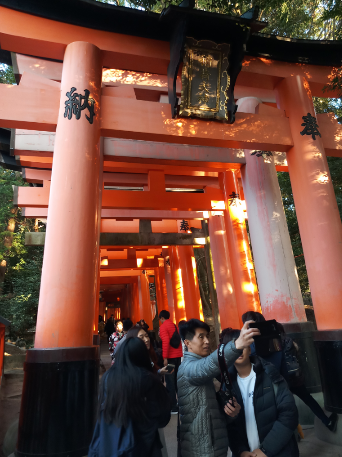 It was really super crowded, and we wanted to quickly head over to the place with the thousands of gates since we read that there isn't much artificial light up there and it gets really dark and spooky when the sun sets.