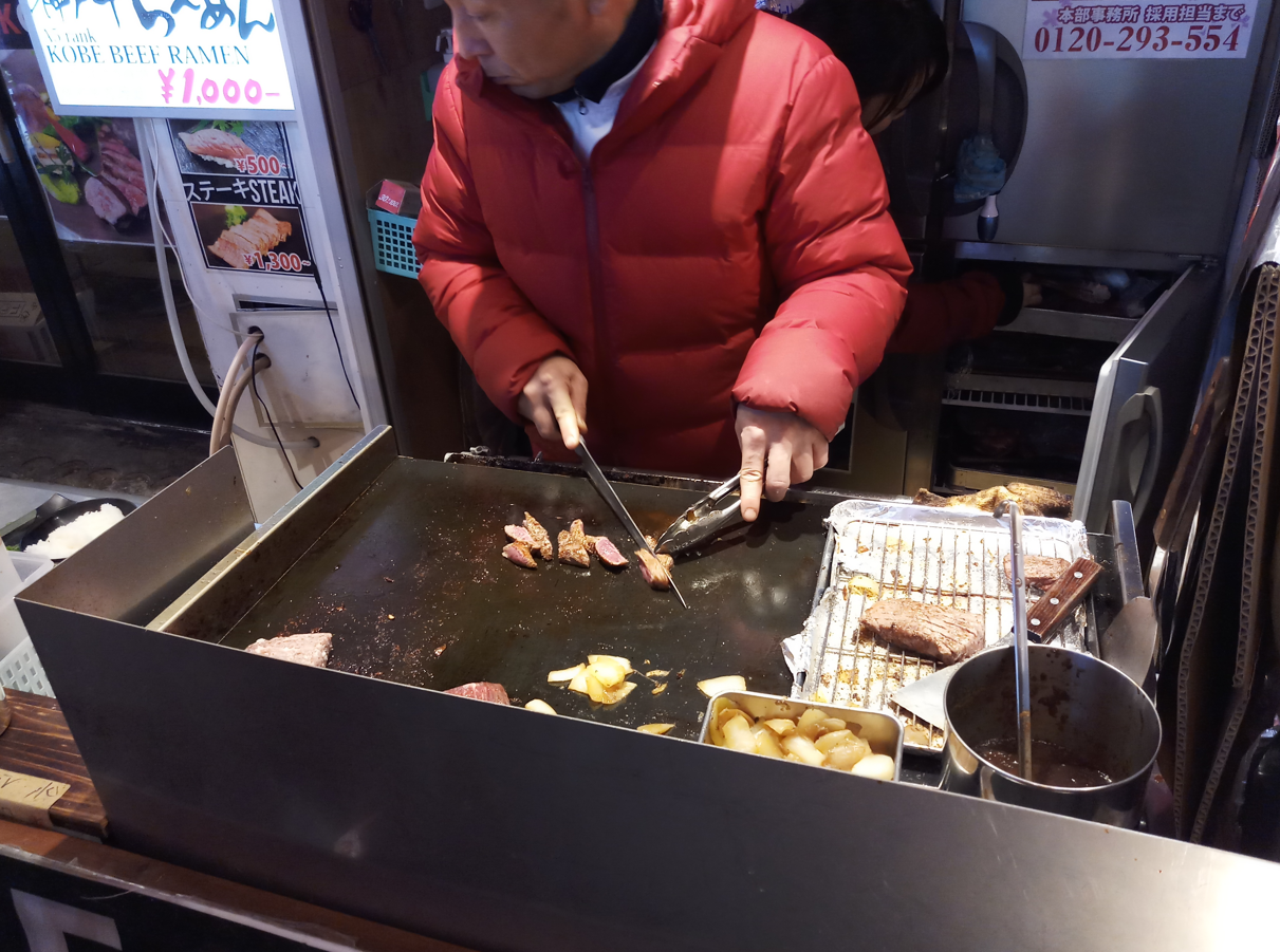 There were a lot of Kobe Beef stalls here for some reason, and it smelled so good, so we decided to try it and see how it compared to the one we had in Kobe last time!