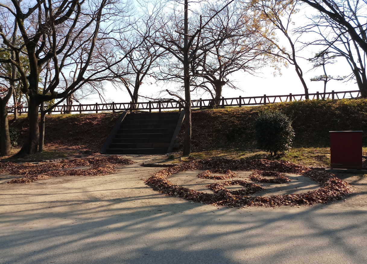 When we were about to cross the castle threshold, we noticed the raked leaves outside were put into such neat piles! And they actually looked like shapes or words! I mean just look at that face!
