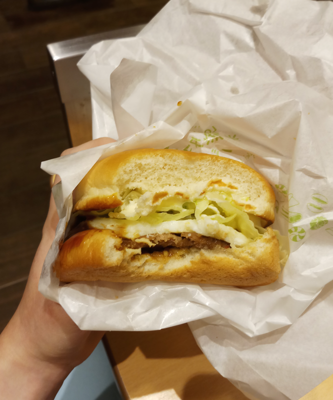 And we even tried different burgers this time! I think this was a beef burger with egg or something, but it tasted pretty good!