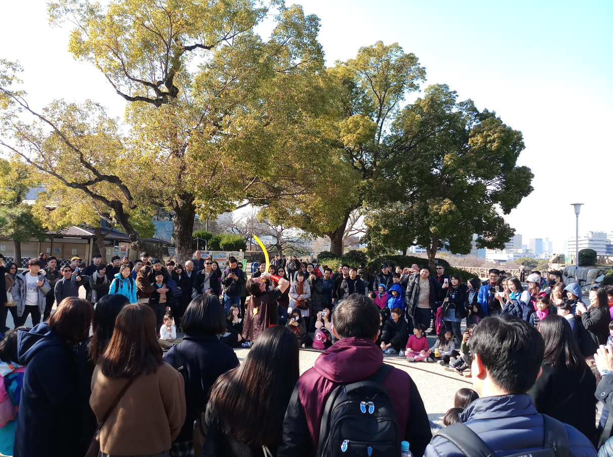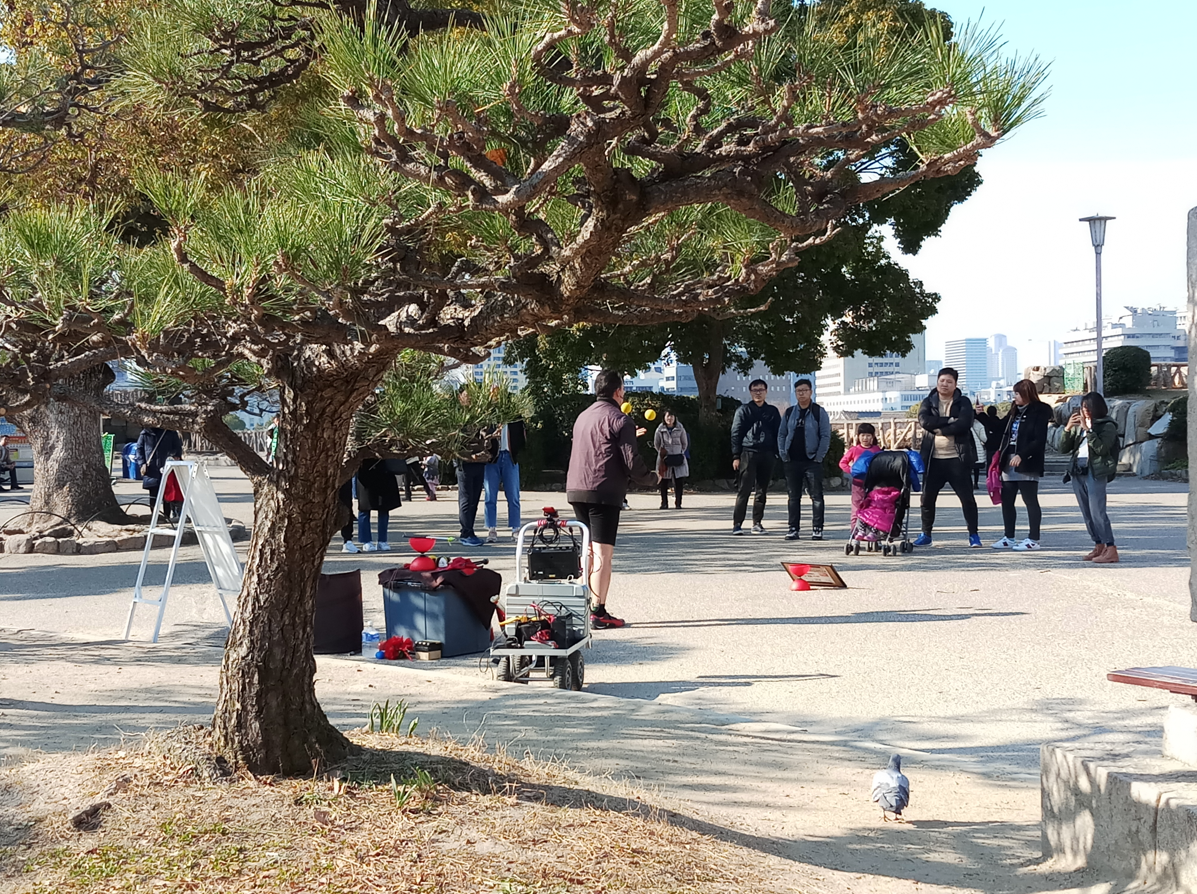 There was a guy performing in front of Osaka Castle for everyone, doing party tricks like juggling and magic.