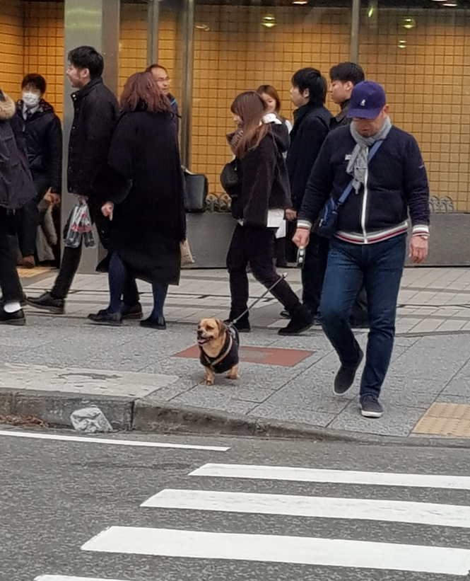 And just after that we saw this chonky doggo wearing a cute little jacket crossing the same street as us!
