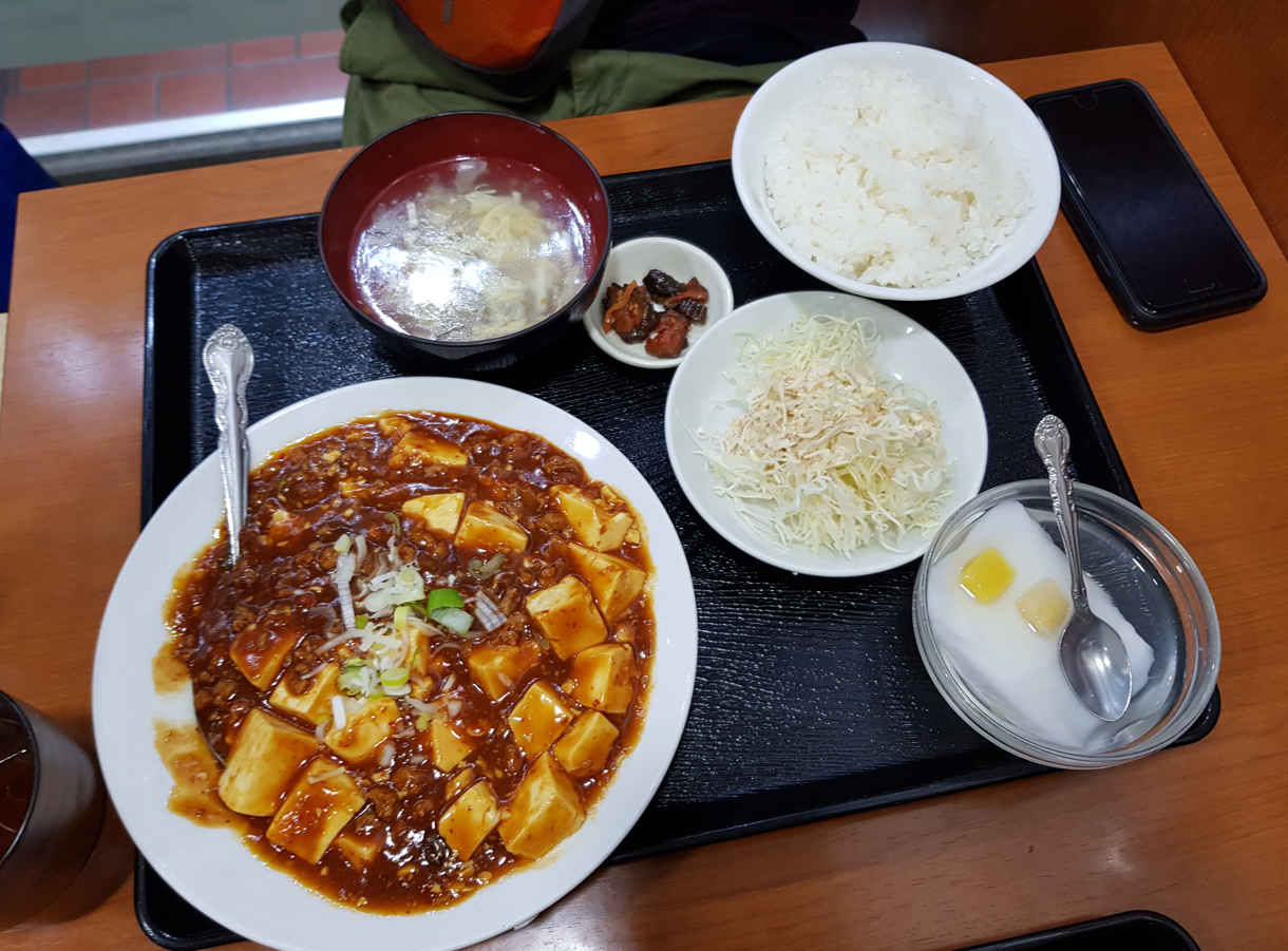 Sean opted to get the mapo tofu set which includes a bowl of white rice, soup and cabbage and a special coconut dessert.