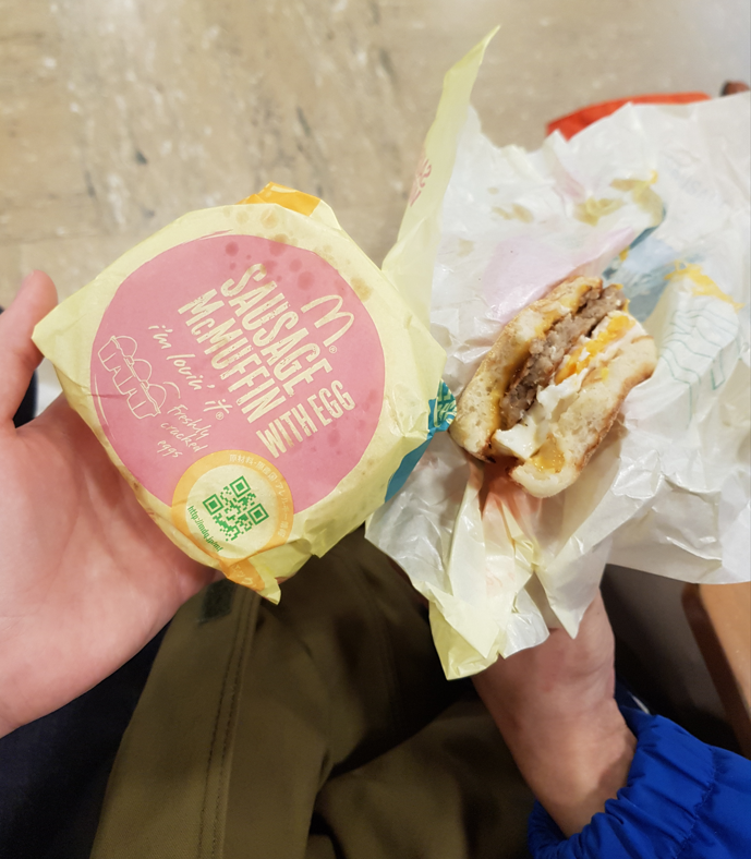 We bought the exact same meal; Sausage McMuffin with Egg! A true classic that can never go wrong!