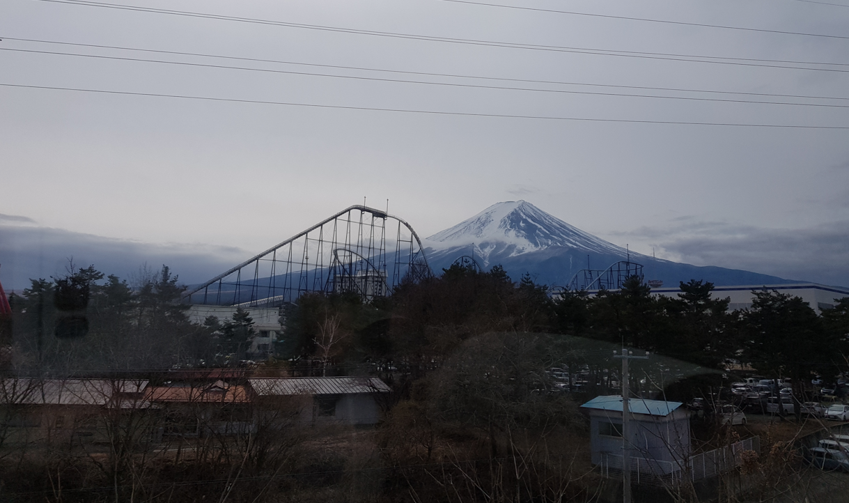 The bus ride took about 1.5 hours but eventually, we got in sight of Mt Fuji and even the roller coaster track!