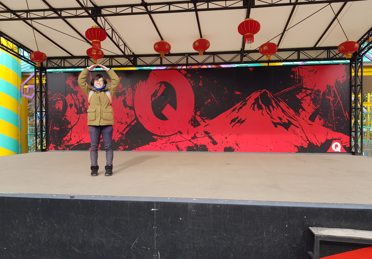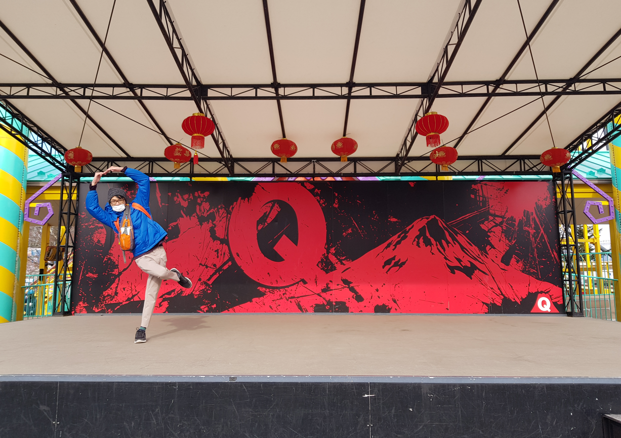 Then we saw this stage with a cool backdrop and just had to take a photo!
