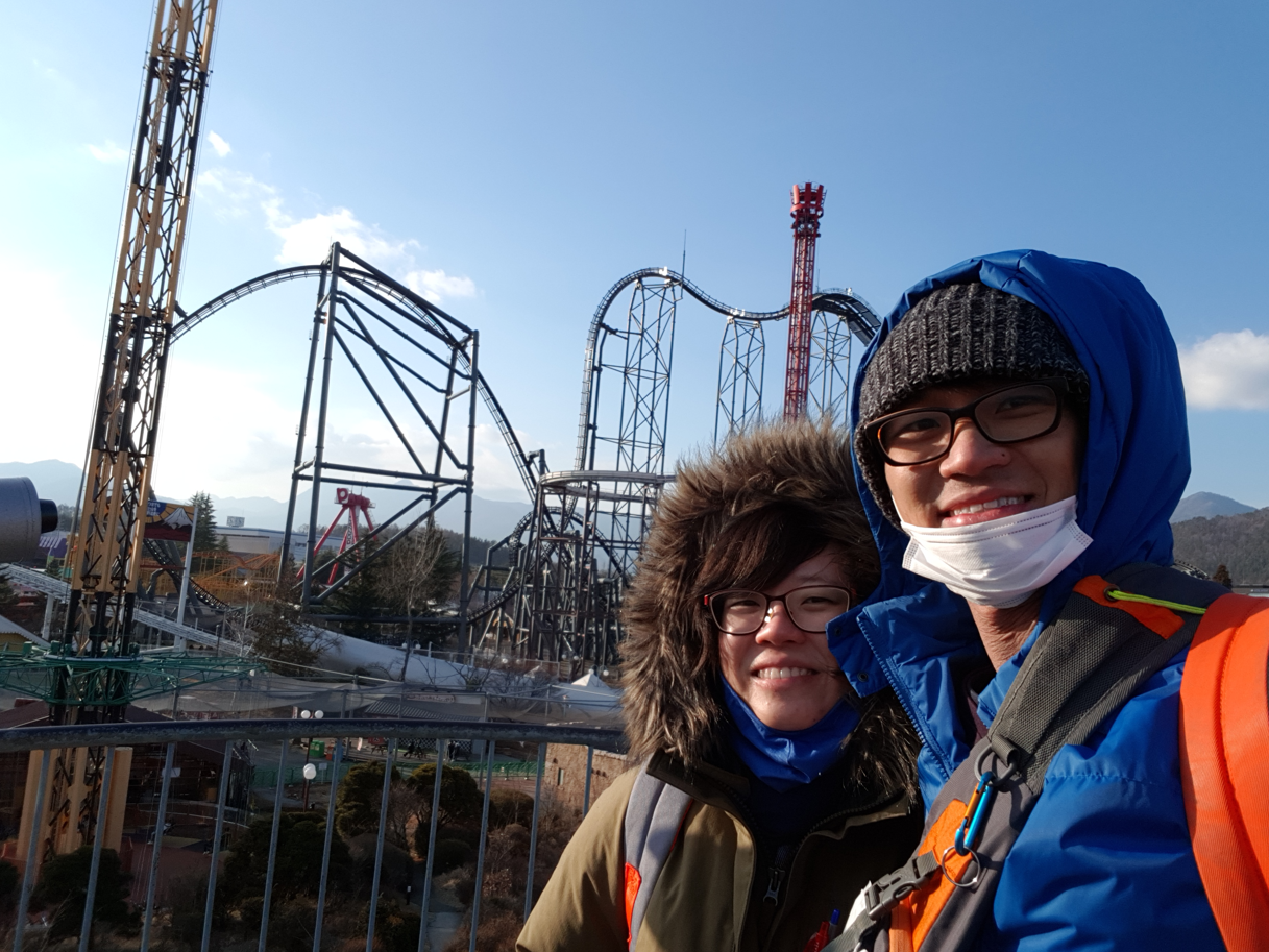 But this time we were staying somewhat outside Tokyo in an area called Omorimachi and last week, we started our Valentines Day with a thrilling journey through Fuji-Q Highland, which is an amusement park at the foot of Mt. Fuji renowned for their world record breaking roller coasters!