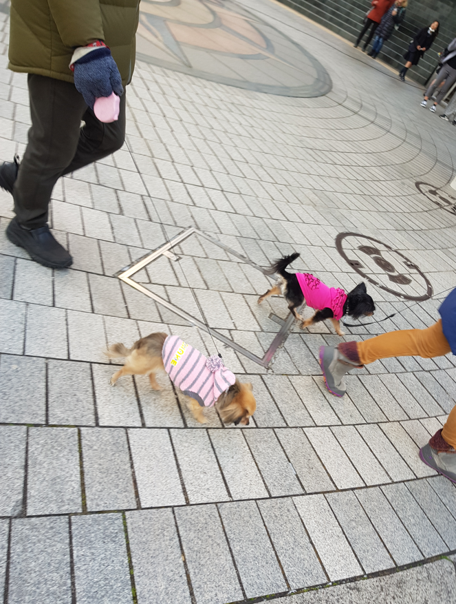 We saw these cute puppers walk pass too! They looked so cute in their little sweaters omg 😍