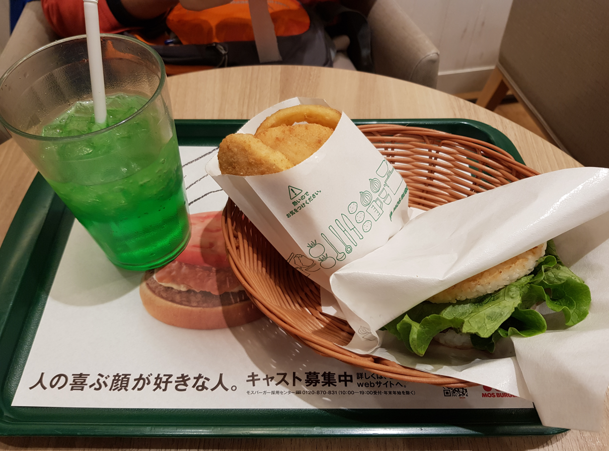 But tbh none of the shops and restaurants were really grabbing our attention so we ended up just eating MOS Burger! We shared a rice burger meal with some chicken cutlets and onion rings! It was pretty yummy!