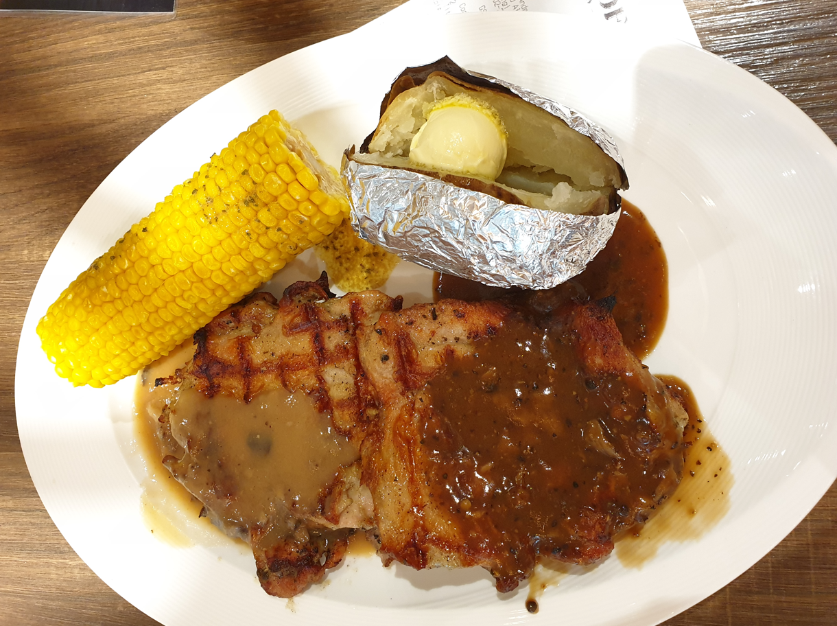 We had lunch at one of our favourite Western casual restaurants, ASTONS! And we bought our usual chargrilled chicken with a baked potato and corn on the cob. We weren't too hungry at the time so we just shared it and picked bigger sides.