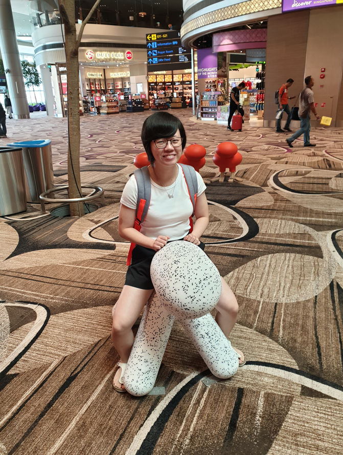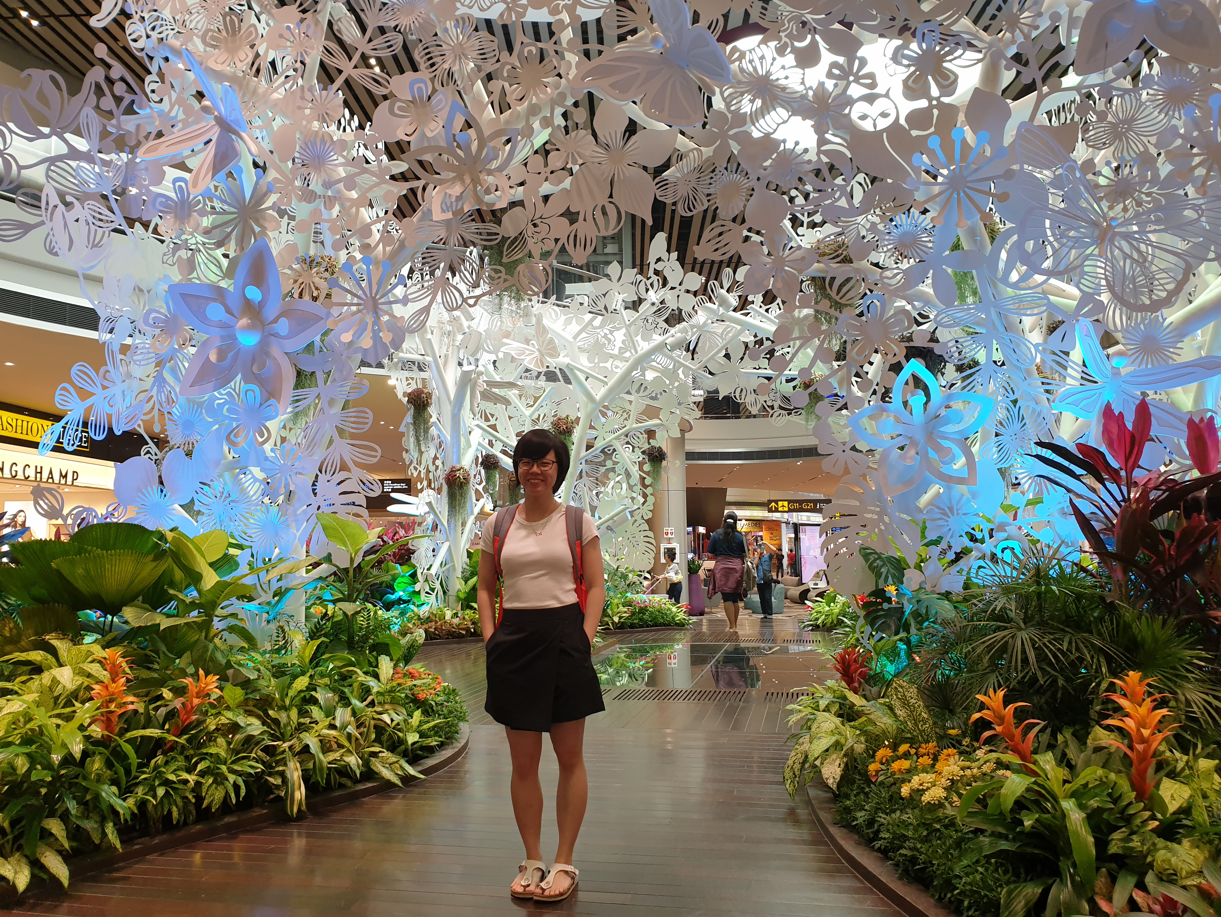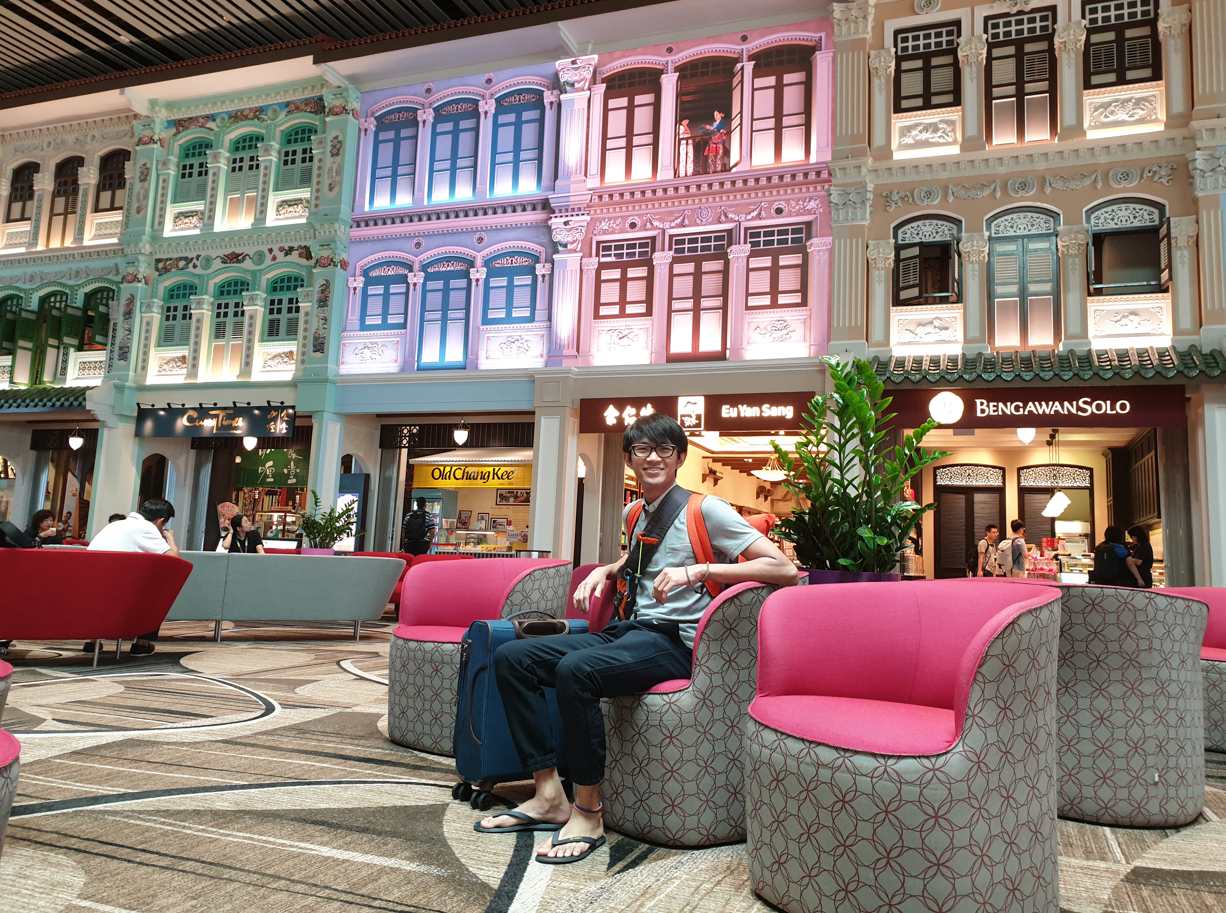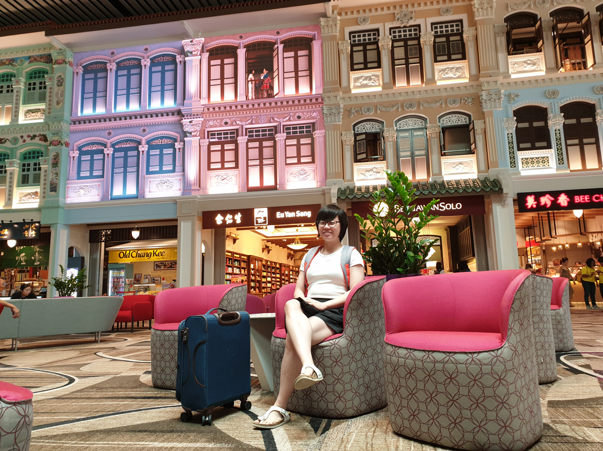 Just like the rest of Changi Airport, it was lovely! With some indoor greenery, a bunch of luxury boutiques and souvenir shops. The waiting area was what impressed us the most though! With a traditional Peranakan design at the back blending with the shops below, it was really a unique sight!