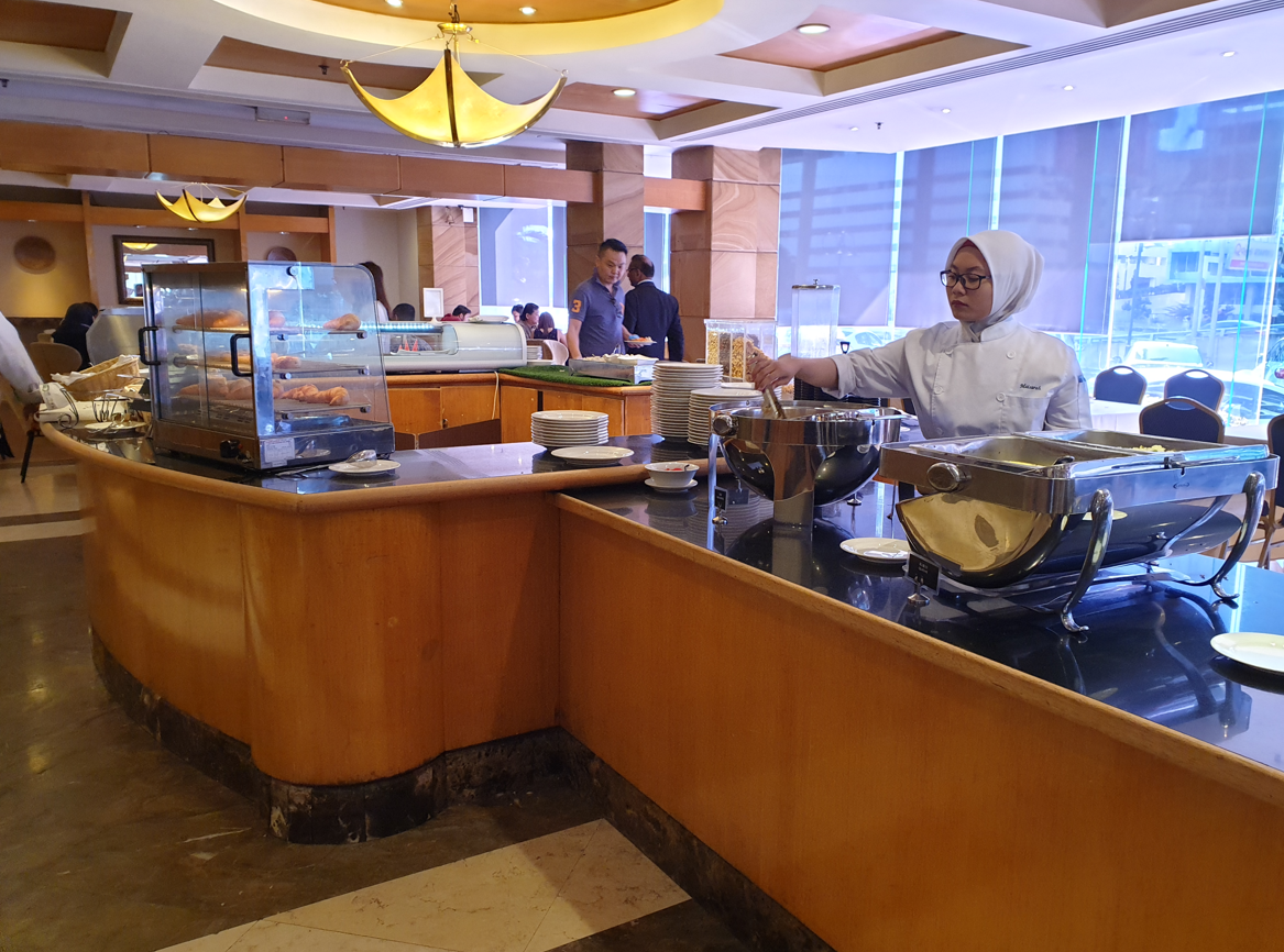 As always there were different types of bread, cereal and fruits, as well as cooked food like Rosti Potato, Chicken in Cream Sauce and an omelette station!