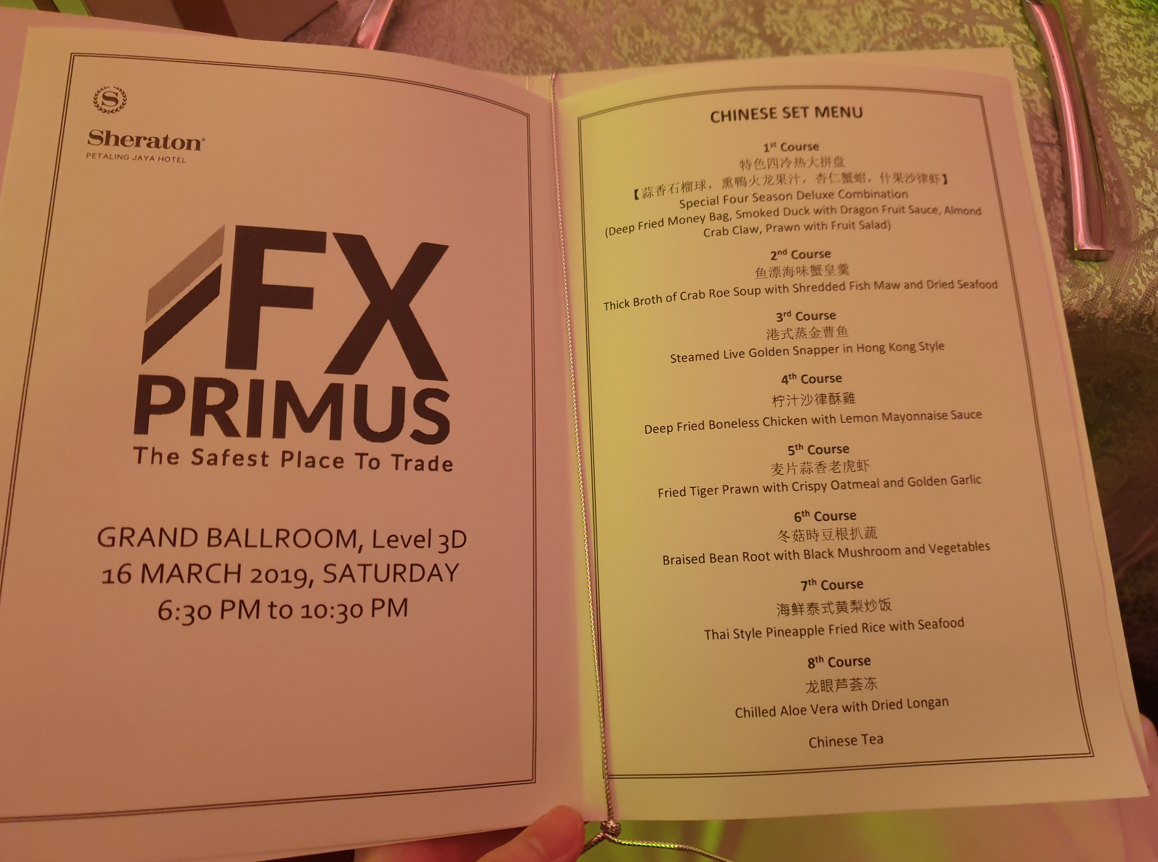 The whole time we were getting served the different courses the host of the event was talking and entertaining the audience in some way, talking to people in the audience and asking questions like how they found FX Primus. Luckily we were sitting at the back if not I wouldn't know what to say.
