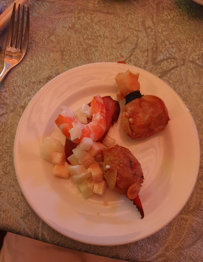 It actually looked pretty alright other than the fruit salad since I'm not really a fan of cold food. But we had the host come in and introduce the event while we were served the appetiser. The deep fried money bag was alright but the prawn and fruit salad was meh.