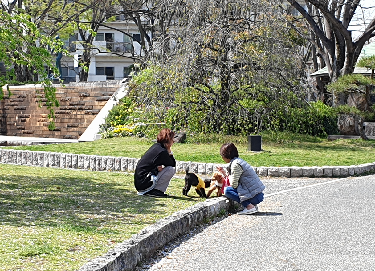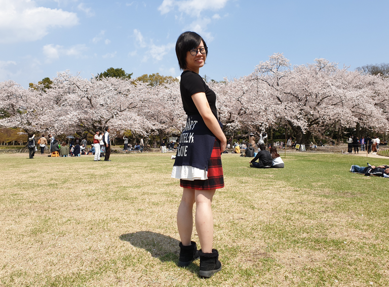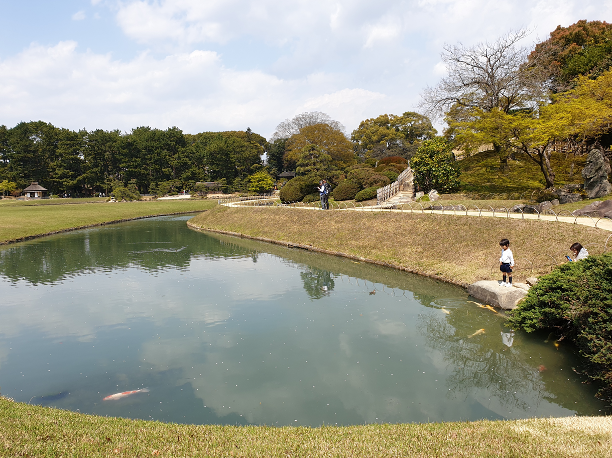 We walked a little past the cherry blossom grove to dodge the heat and found this koi pond with the sakura petals floating on the surface and it looked just like a painting in real life!