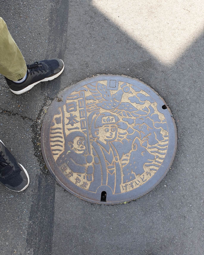 We found this very cute manhole cover though! I'm not sure if it is but I'm willing to bet it depicts one of the rulers of Okayama in ancient times.