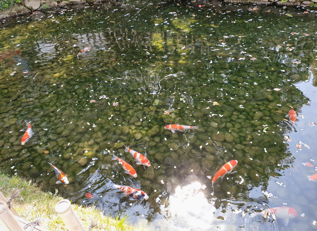 The water was so clear you could see the koi fish so prominently and they looked beautiful contrasting against the floor of the pond.
