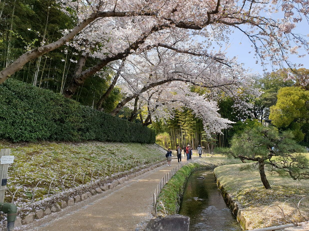 Before arriving to this very pretty pathway with a moat, bamboo trees on the side and overhanging sakura branches! It looked absolutely breathtaking!