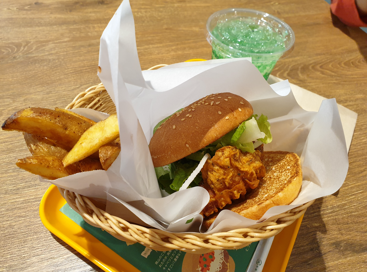 The name was pretty interesting so I thought it'd be worth a shot. We ordered their chicken burger set with fries and a melon soda: