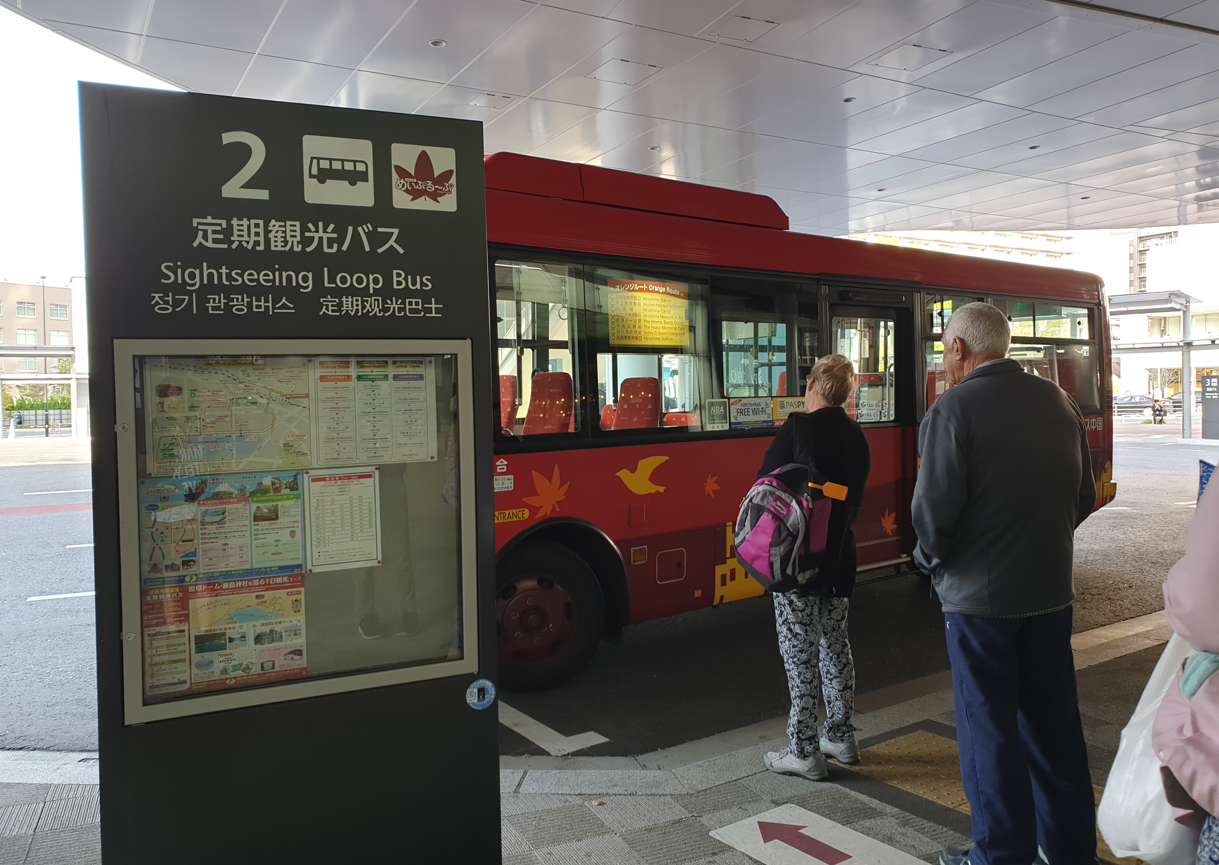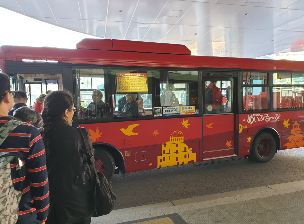 But our day wasn't ending just yet! We took the bullet train back to Hiroshima just in time for the sunset! And at the station, we came across this Sightseeing Loop Bus!