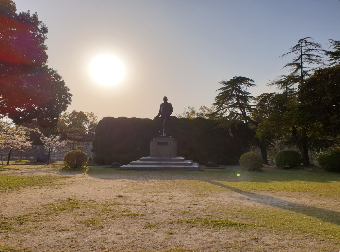 And after about 15 minutes or so, the bus dropped us off at the stop nearest to Hiroshima Castle, and we saw this statue of some dude. Unfortunately the plaque was in Japanese but I figured he must be the one of the political leaders in Hiroshima or something.