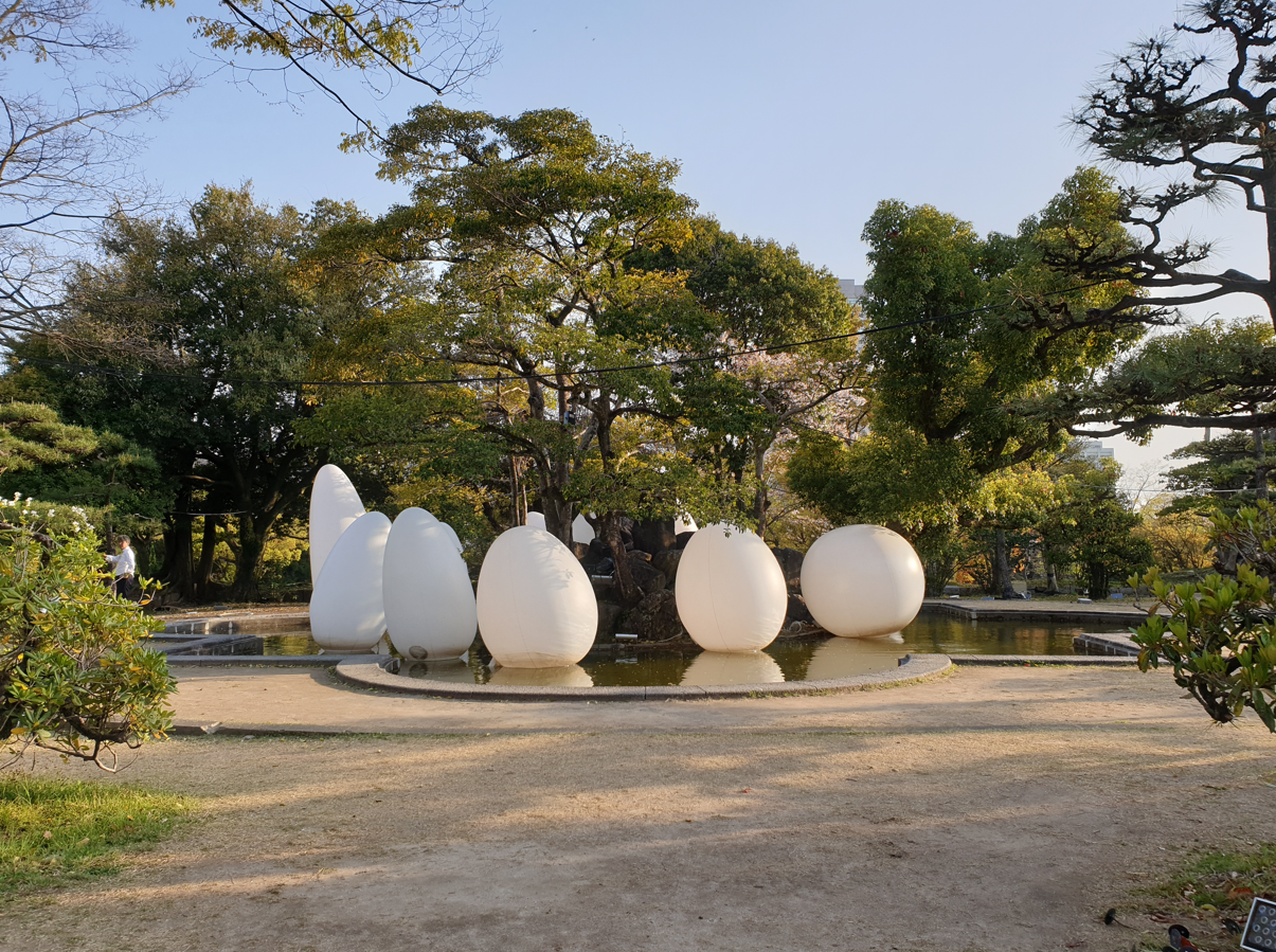 So we walked straight ahead to the Ruins of Sakurano-ike Pond which had these balloons that looked like eggs floating on the surface? I'm not sure what's up with that but maybe they're lamps?