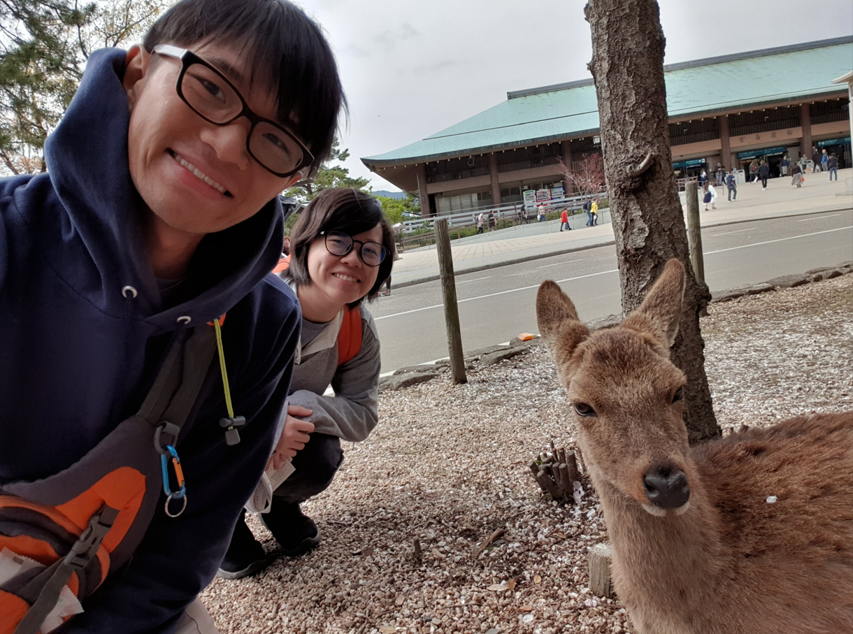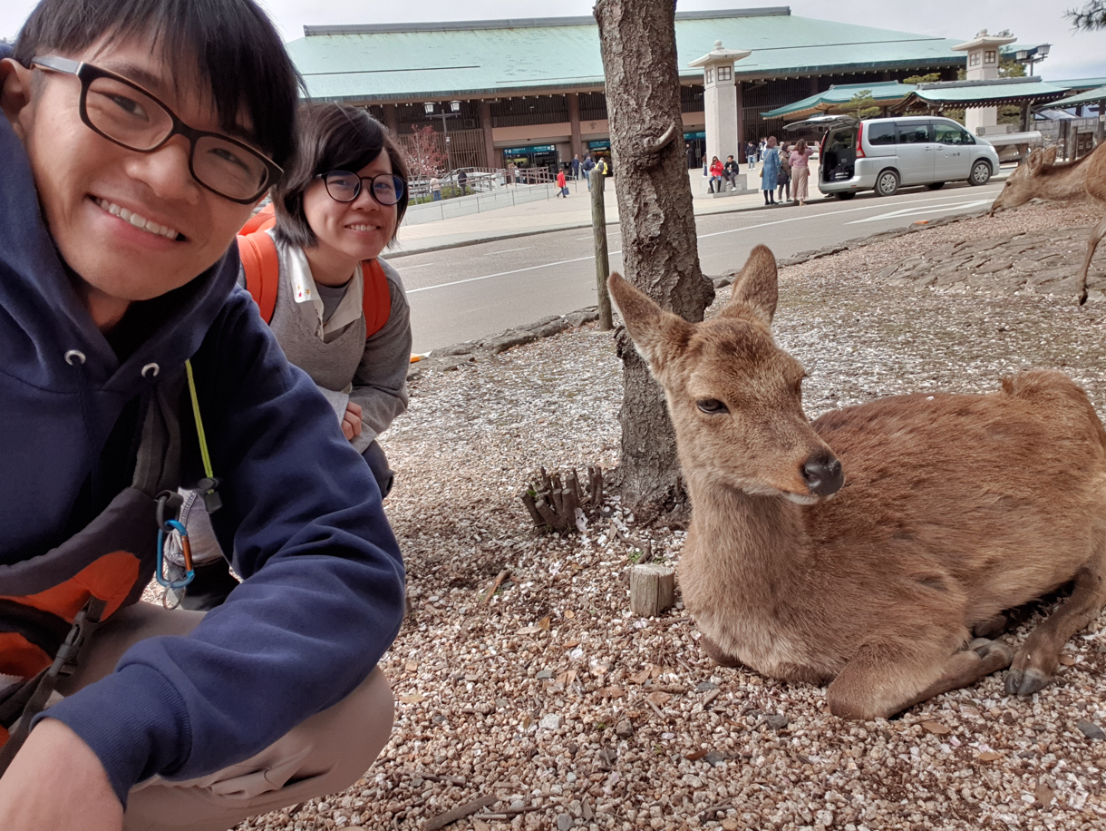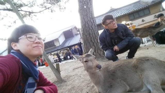 I think we haven't seen deer since we last went to Nara in 2016! But we took a similar photo back then: