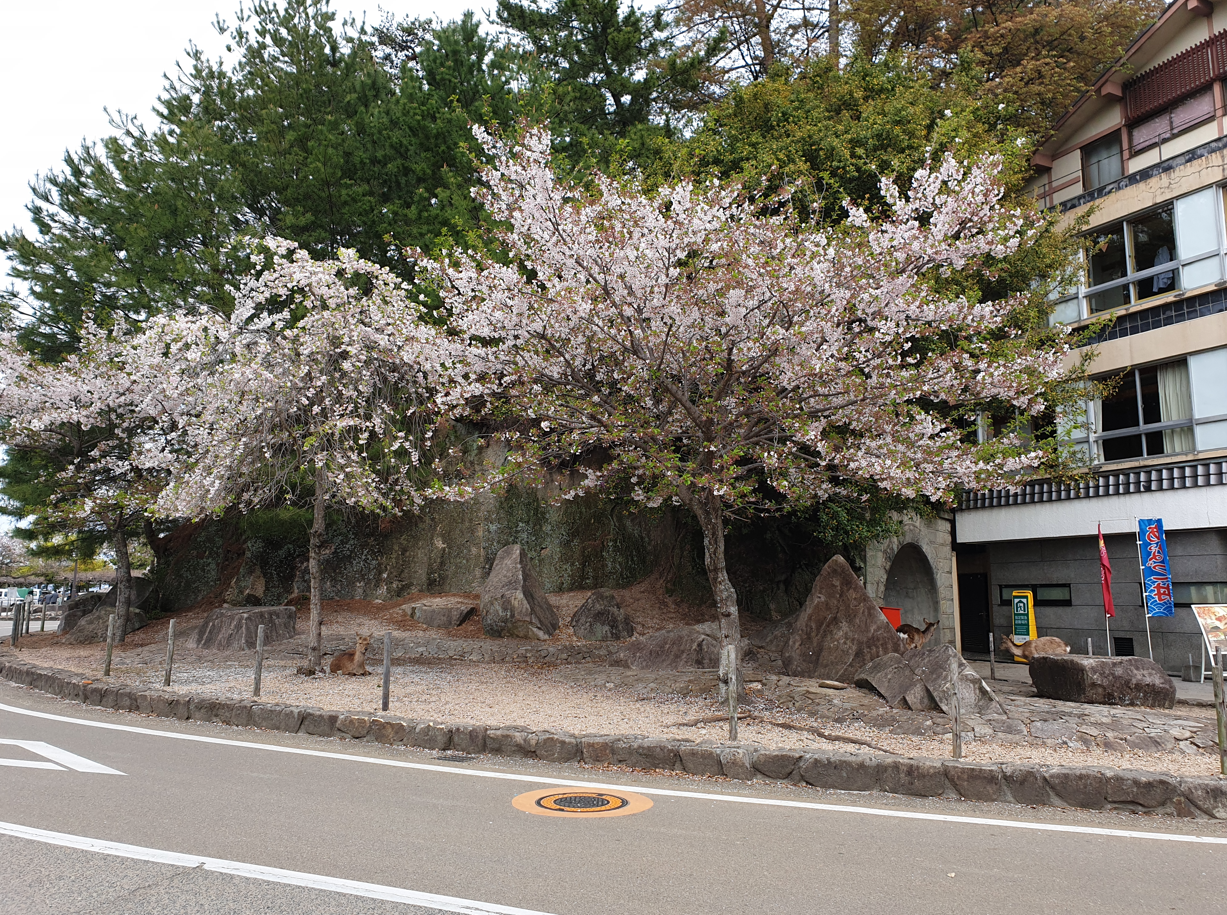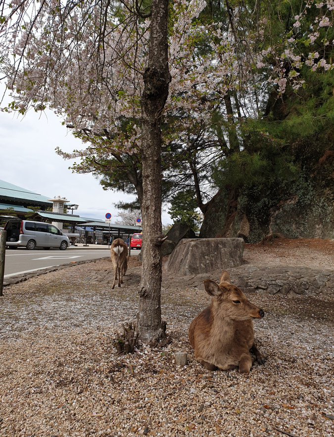 One of the first things we saw when we arrived were these deer resting under cherry blossom trees!