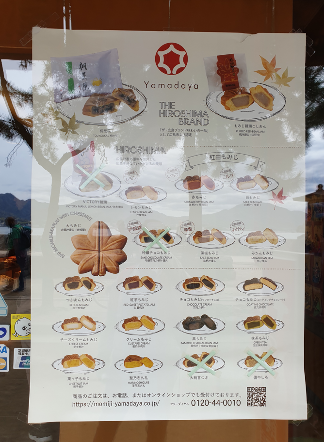 There was even a bakery called Yamadaya selling the local specialty momiji-manju, which is a buckwheat and rice cake shaped like a Japanese maple leaf, and is unique to the island!This bakery itself had so many different flavours!