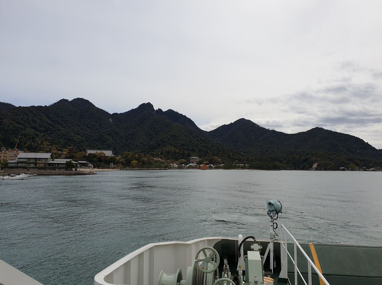 So we had to take a ferry from Hiroshima Bay to get there and they have boats going back and forth every hour or so. After we bought some snacks from the convenience store, we headed to the port to board the ferry!