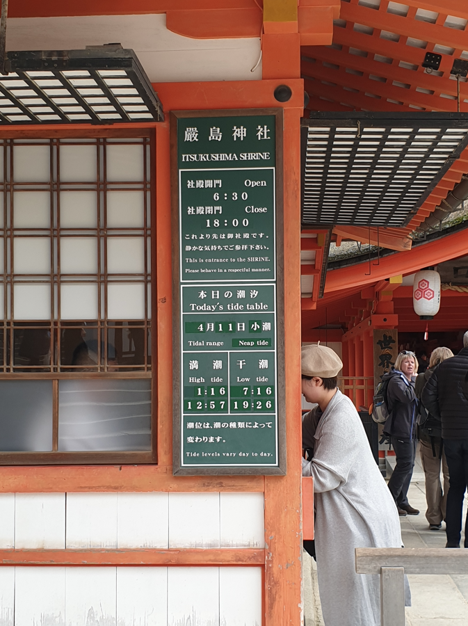 At the entrance to Itsukushima shrine, they even had a tide table to show when it was going to be high and low tide, although of course it was just a rough estimate.