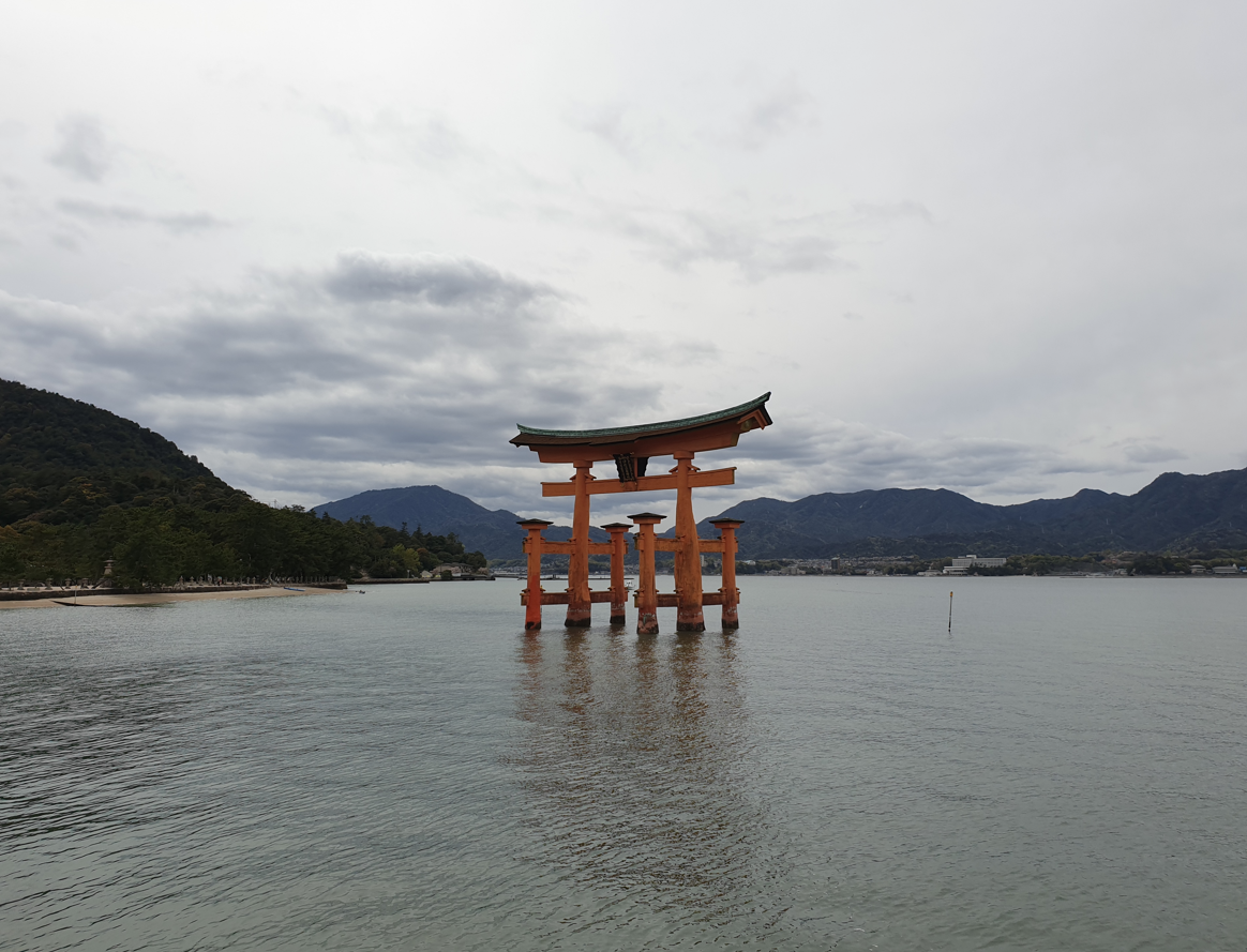 Miyajima is a small island less than an hour outside the city of Hiroshima. Although officially named Itsukushima, it is more widely known as Miyajima, Japanese for "shrine island" because it is most famous for its key shrine, Itsukushima shrine and giant torii gate, which at high tide seems to float on the water. The sight is ranked as one of Japan's three best views. (Source: japan-guide)