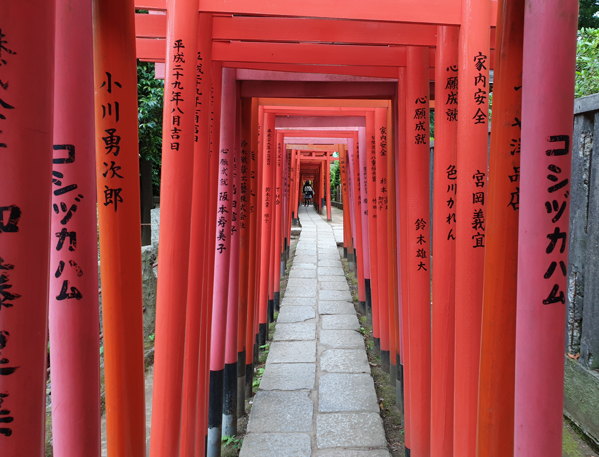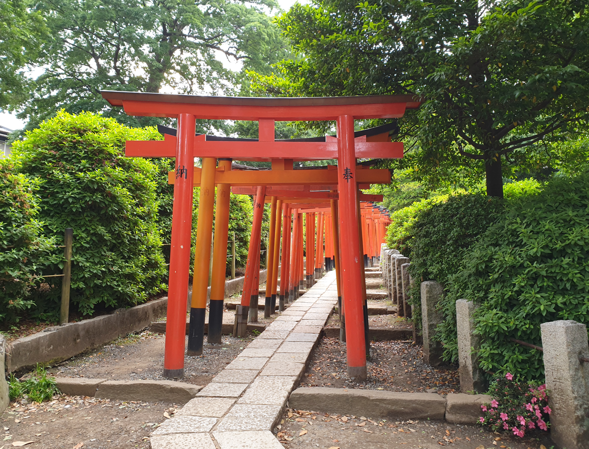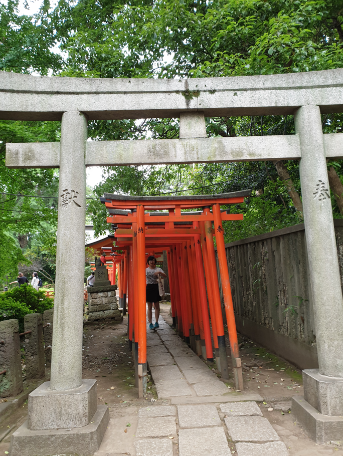 Nezu shrine is one of Japan's oldest shrines, and probably one of its most attractive! Nezu Shrine is set in lush greenery with ponds of carp and elegant, beautifully colored, wooden structures that reflect Japanese culture in all its age and beauty. But the thing that drew me most to this shrine were the paths made of small torii gates!