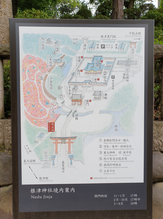 I read that these are actually azalea bushes and Nezu Shrine is the home of the Bunkyo Azalea Festival, which happens every April and is named after Tokyo's Bunkyo ward where Nezu Shrine is located! Over an acre and a half of vivid azaleas bloom in shades of mainly pink and white, and in different shapes and sizes, in what is one of Tokyo's most spectacular spring scenes! (Source: japan-experience)