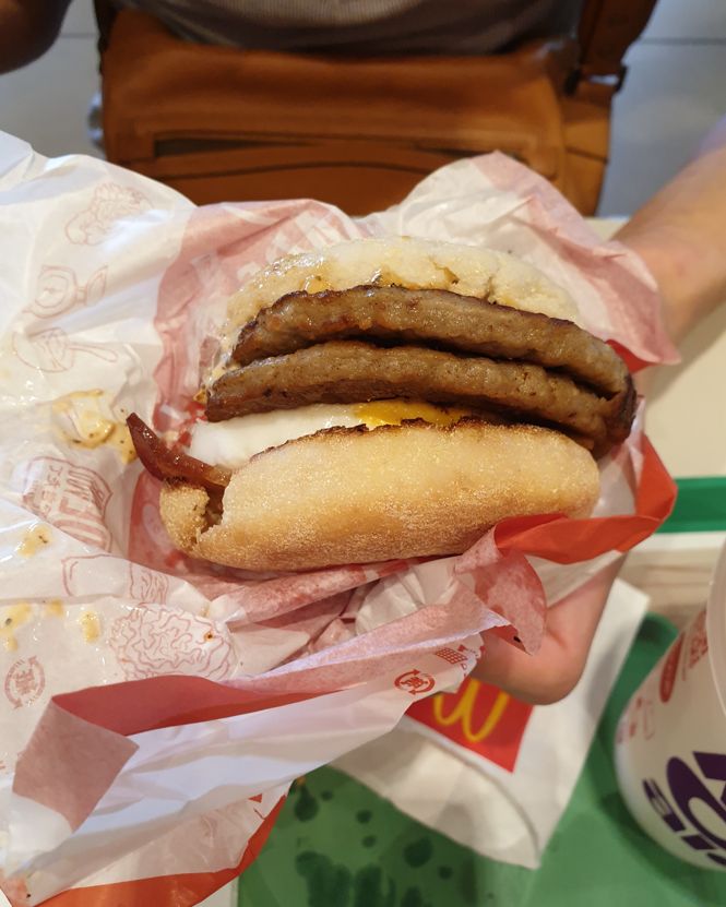 While Seany ordered a double Sausage McMuffin with Bacon! I don't think we have this here so it was interesting but I felt like it was a little too much sausage for me. Still yummy though!