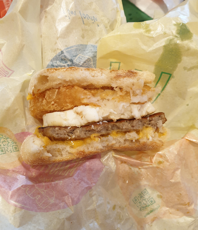 I ordered my usual Sausage McMuffin with Egg, and inserted my hashbrown in there too to make my own custom Sausage McMuffin!