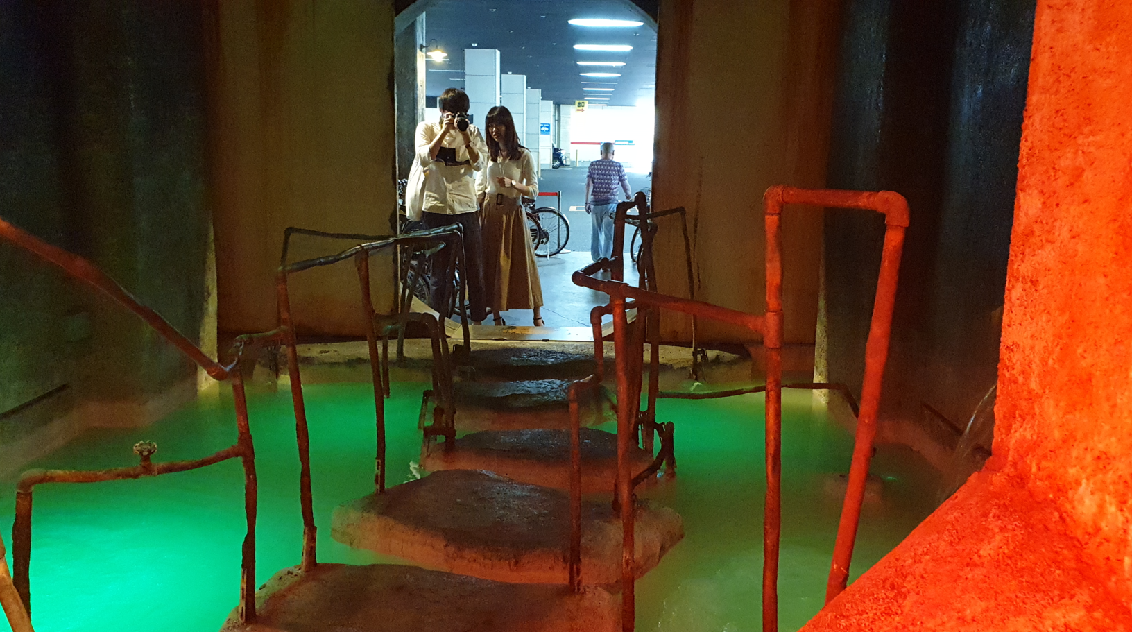 Just pass the entry there was also an exit into the neighbouring carpark across this creepy moat that really gave haunted house vibes.