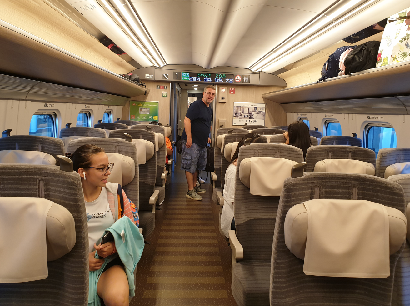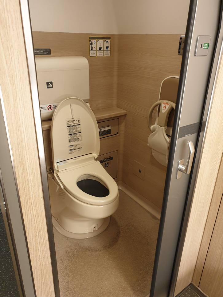 I don't think I've ever used the toilet on the train before but it is really clean and of course has the classic Japanese high-tech toilet.