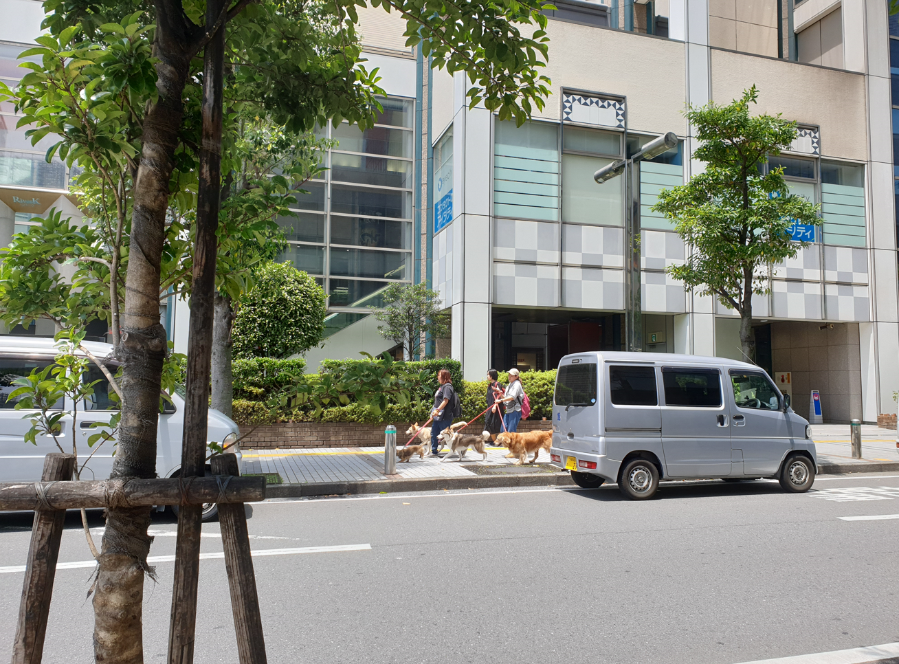 We actually got up before noon this time so it was pretty warm out but it wasn't peak noon yet at least. And we saw these people walking a bunch of cute doggos across the street!