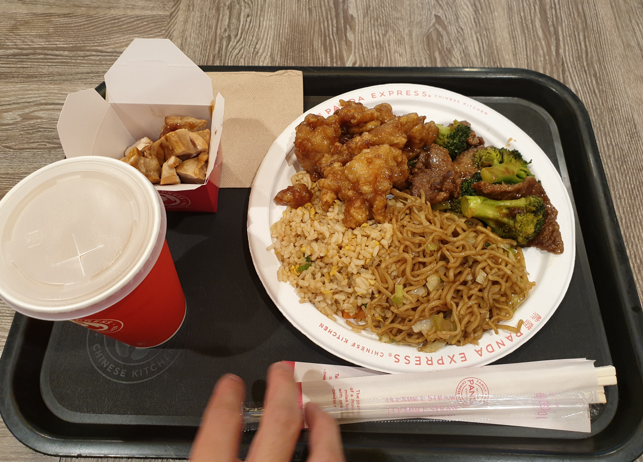 For the sides we got broccoli beef, orange chicken and kung pao chicken I think. It actually tasted pretty good. The fried rice was a little blander than I would've liked though and the noodles were only slightly better.