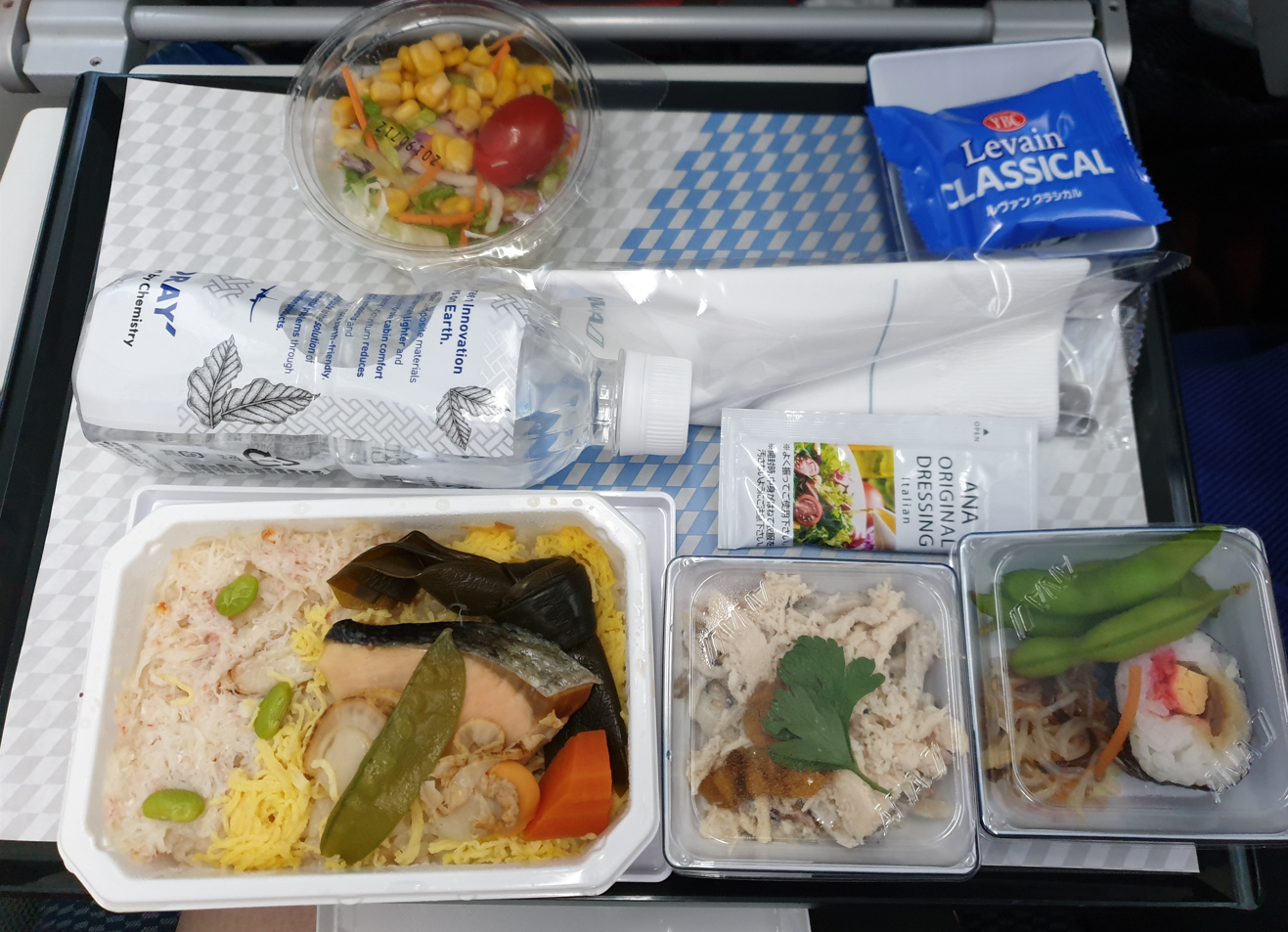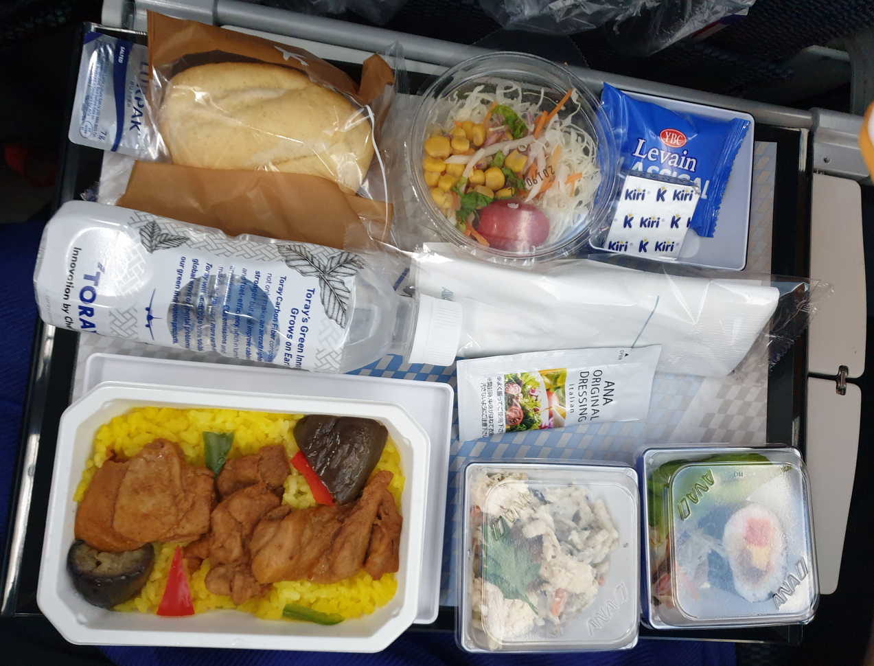 We flew ANA back and it was a pretty nice and uneventful flight. They served lunch slightly after 1pm and for the first time I ordered the fish option which was salmon and rice.