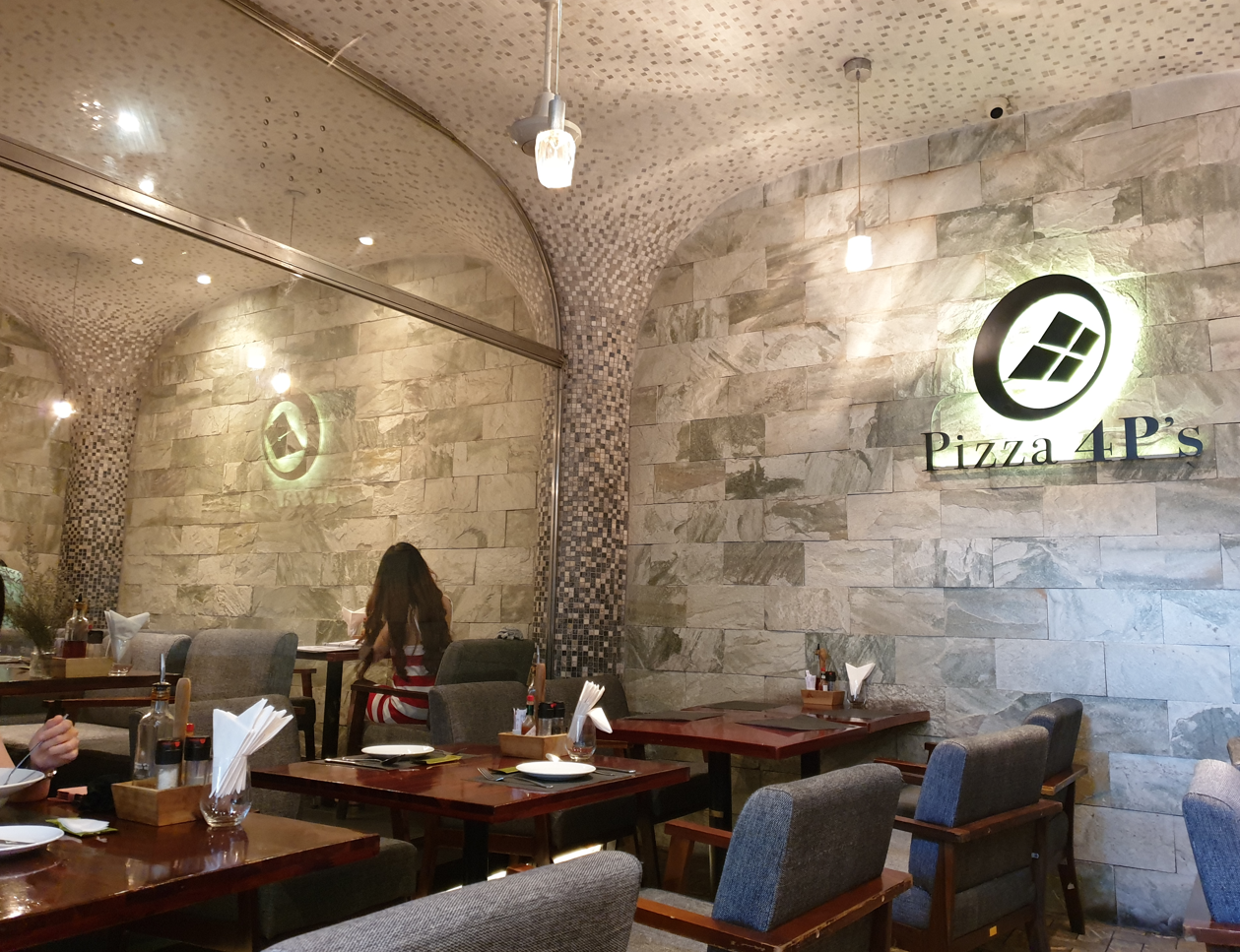 We ended up in the alleyway at a restaurant called Pizza 4P's that has a logo that looked like Windows. The restaurant itself looked a lot fancier on the inside than the outside.