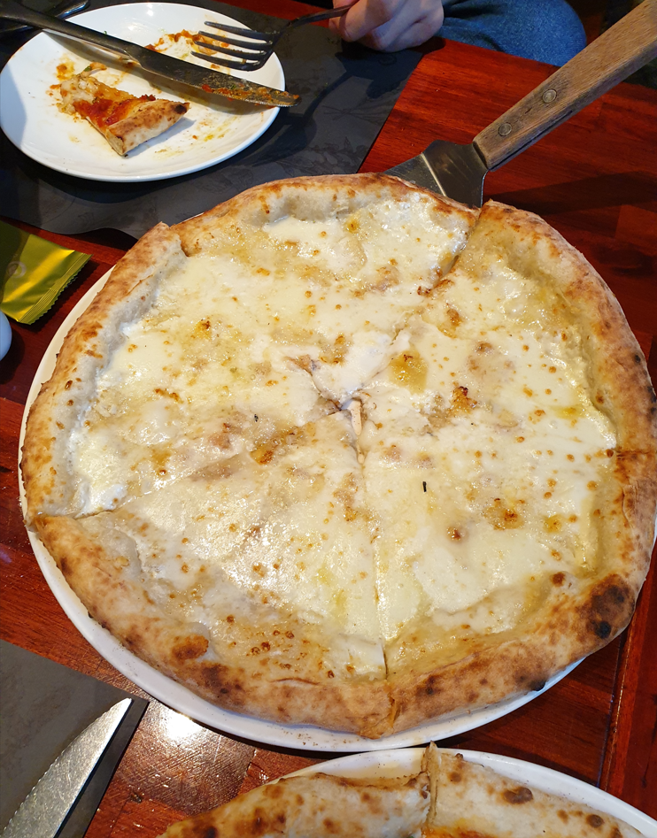 Teddy also recommended the House-made Cheese pizza which was another special where they combined at least 4 different cheese together, and there was curiously a pot of honey for you to drizzle on top of the pizza!