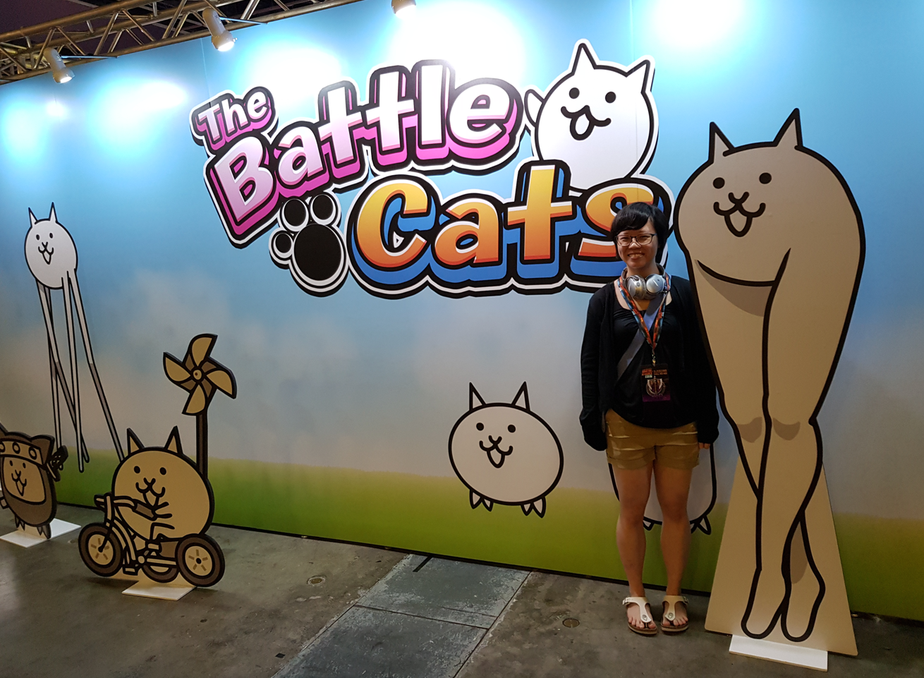 After that we walked around a little bit more and took more pics with some of the booths we missed, like this cute Battle Cats one!