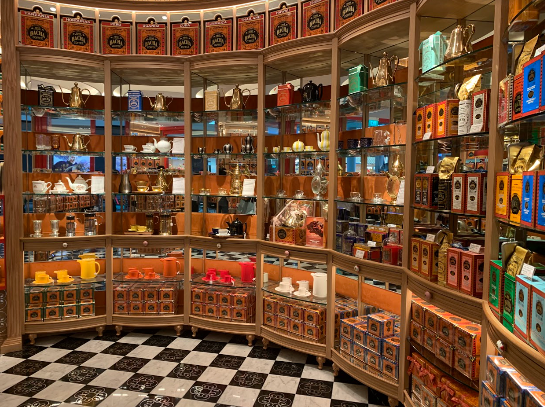 They had a very nice display of all the different types of coffee they offered as well as the special coffee pots and equipment you could buy to brew and serve it in.