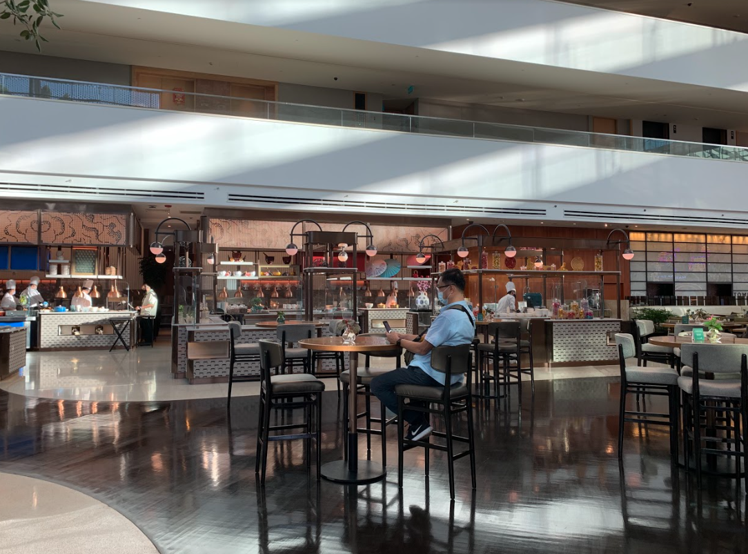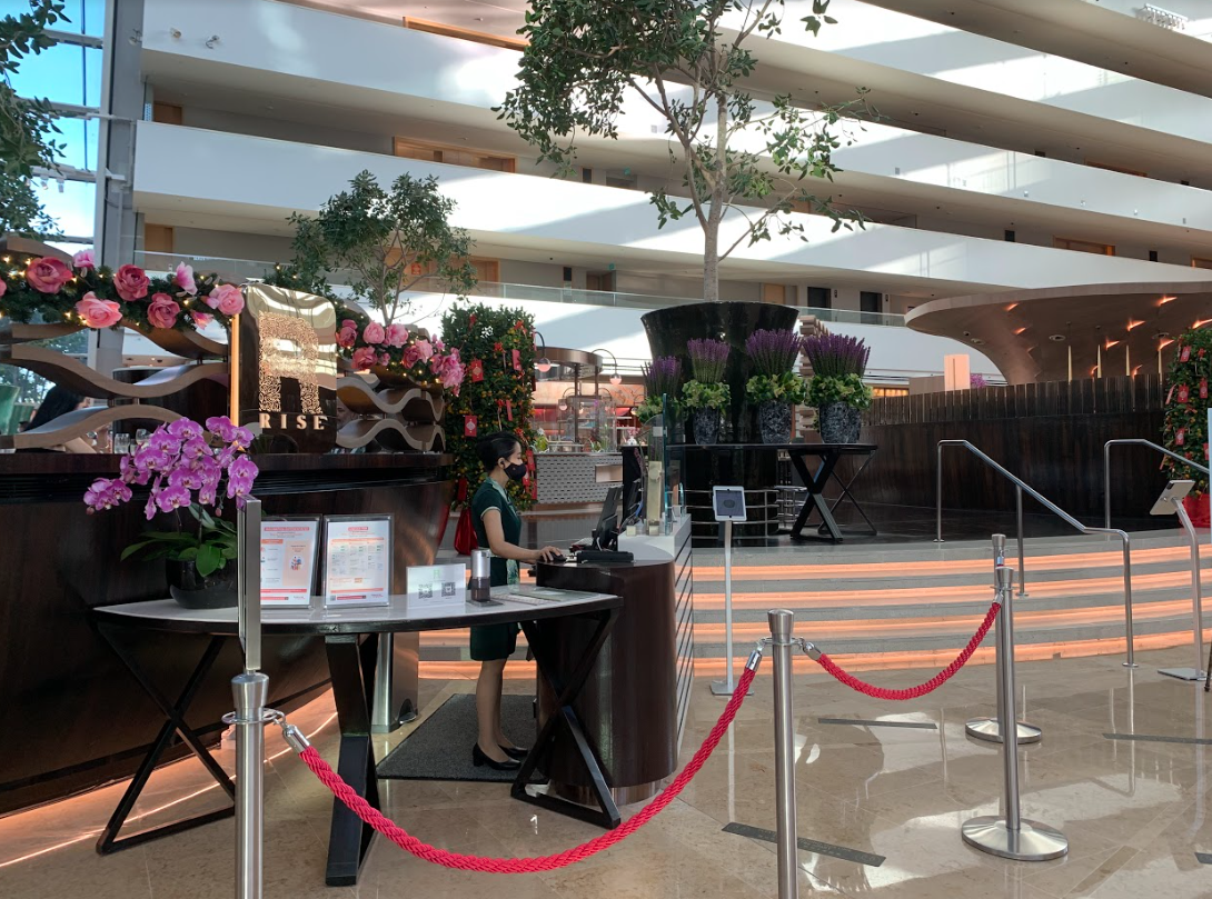 There were Chinese New Year decorations up already since the CNY period was approaching at the time. And the city skyline was quite nice visible through all the glass windows.